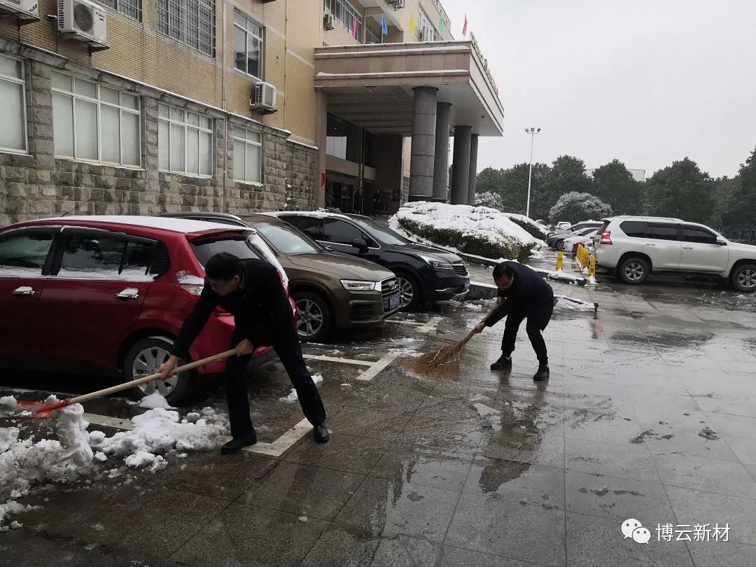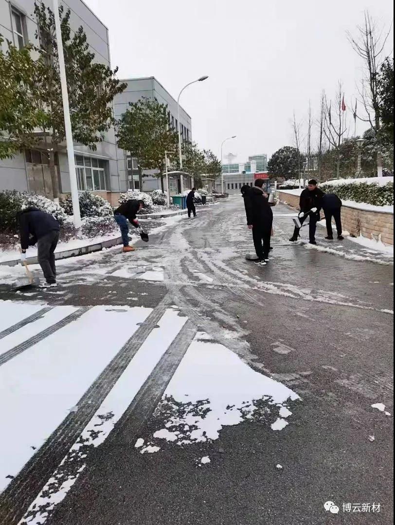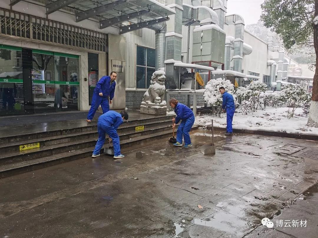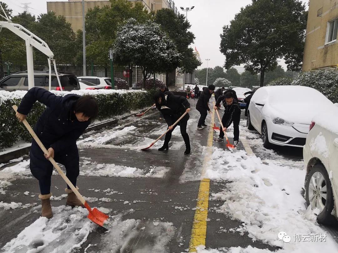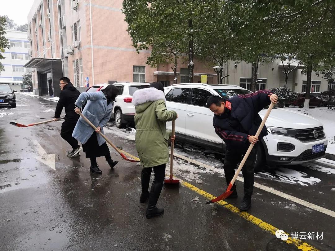 周末的一场大雪为我们带来了玉树琼花的美景,但也给路面带来了大量积雪和冰冻,给交通出行和生产生活带来了不便和安全隐患。为了方便大家周一上班的出行安全,住在博云园区的党员和入党积极分子冒着风雪,连夜对博云新材园区内主要道路的积雪进行初步清扫。