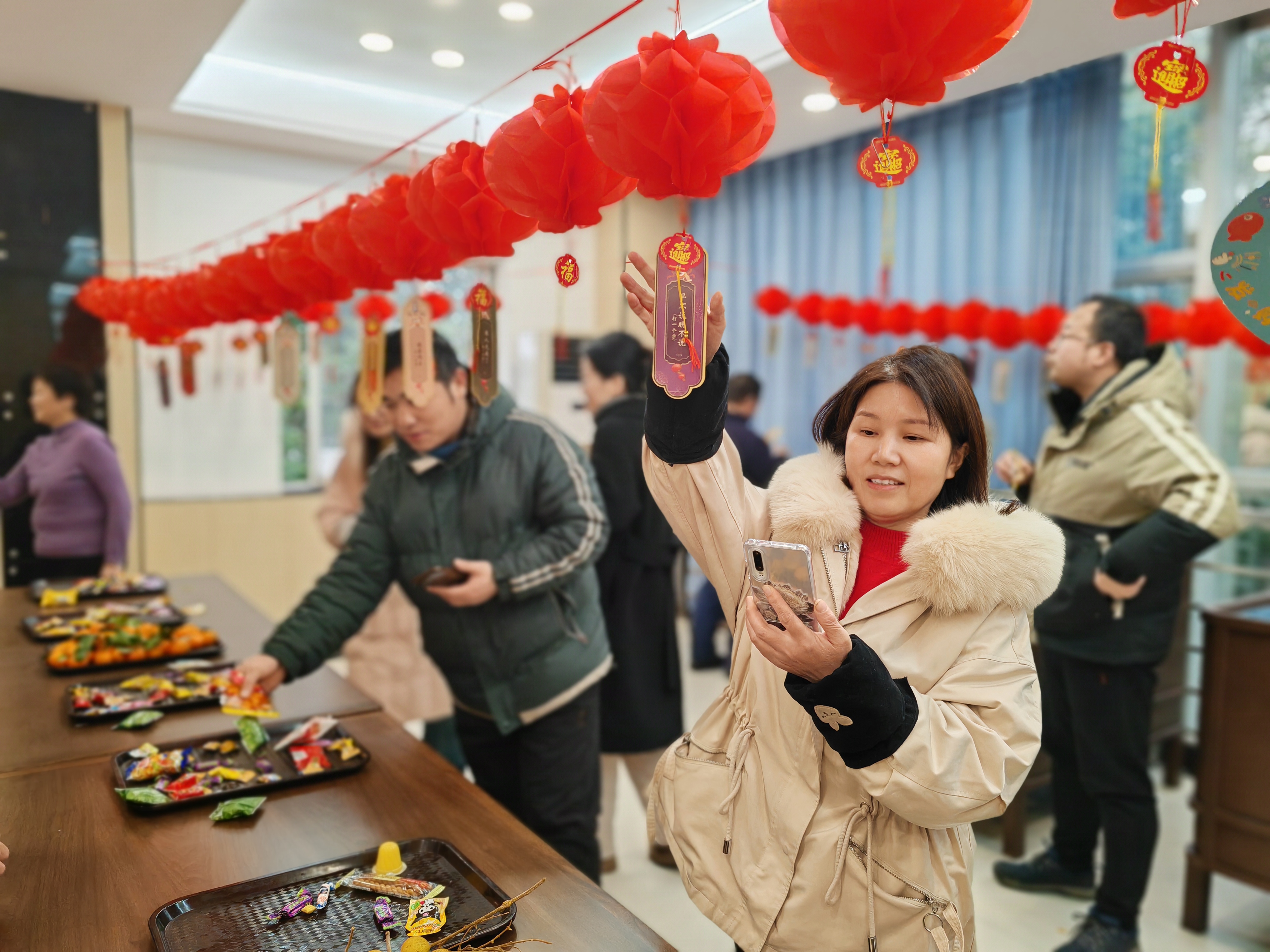一串串红彤彤的灯笼高高挂起,一条条妙趣横生的灯谜迎风飘扬,营造出浓厚的节日氛围。活动现场,人头攒动,员工们兴致勃勃地穿梭在灯笼和灯谜之间,或沉思猜谜,或品尝美食,或互致节日问候,现场欢声笑语不断。