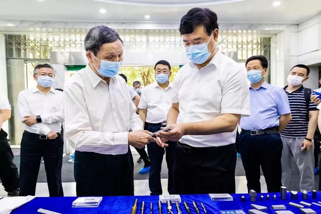 【概要描述】6月15日下午,省委常委、省委政法委书记魏建锋深入博云新材子公司湖南博云东方粉末冶金有限公司等单位,就联系的先进有色金属材料产业集群(产业链)建设工作开展调研。中国工程院院士、博云新材名誉董事长黄伯云,兴湘集团副董事长、总经理、粉冶中心、博云新材党委书记、董事长贺柳参加调研。粉冶中心党委副书记、董事、总裁姜锋,博云新材党委副书记、总裁吴厚平等领导陪同调研。